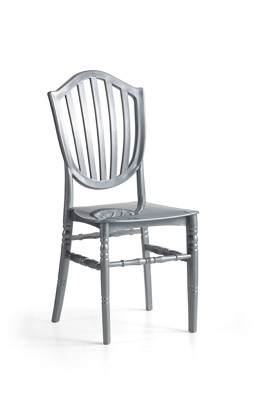 Dasma stolica za vjenčanja izrađena je iz jednog komada pomoću injekcione tehnologije od visokokvalitetnog polipropilena. Ističe se elegantnim naslonom s reljefnim linijama koje kombinuju klasičnu profinjenost s modernim dizajnom. Zahvaljujući UV otpornosti, pogodna je za korištenje na otvorenom i zatvorenom prostoru. Površina otporna na udarce i ogrebotine omogućava dugotrajan i estetski prijatan izgled.
