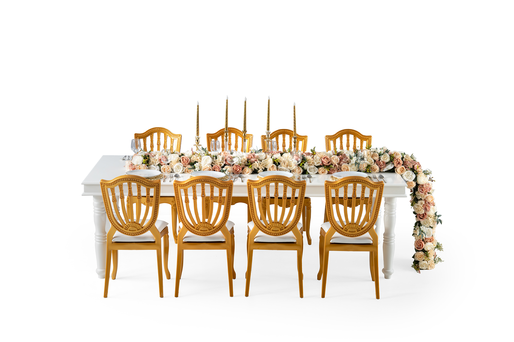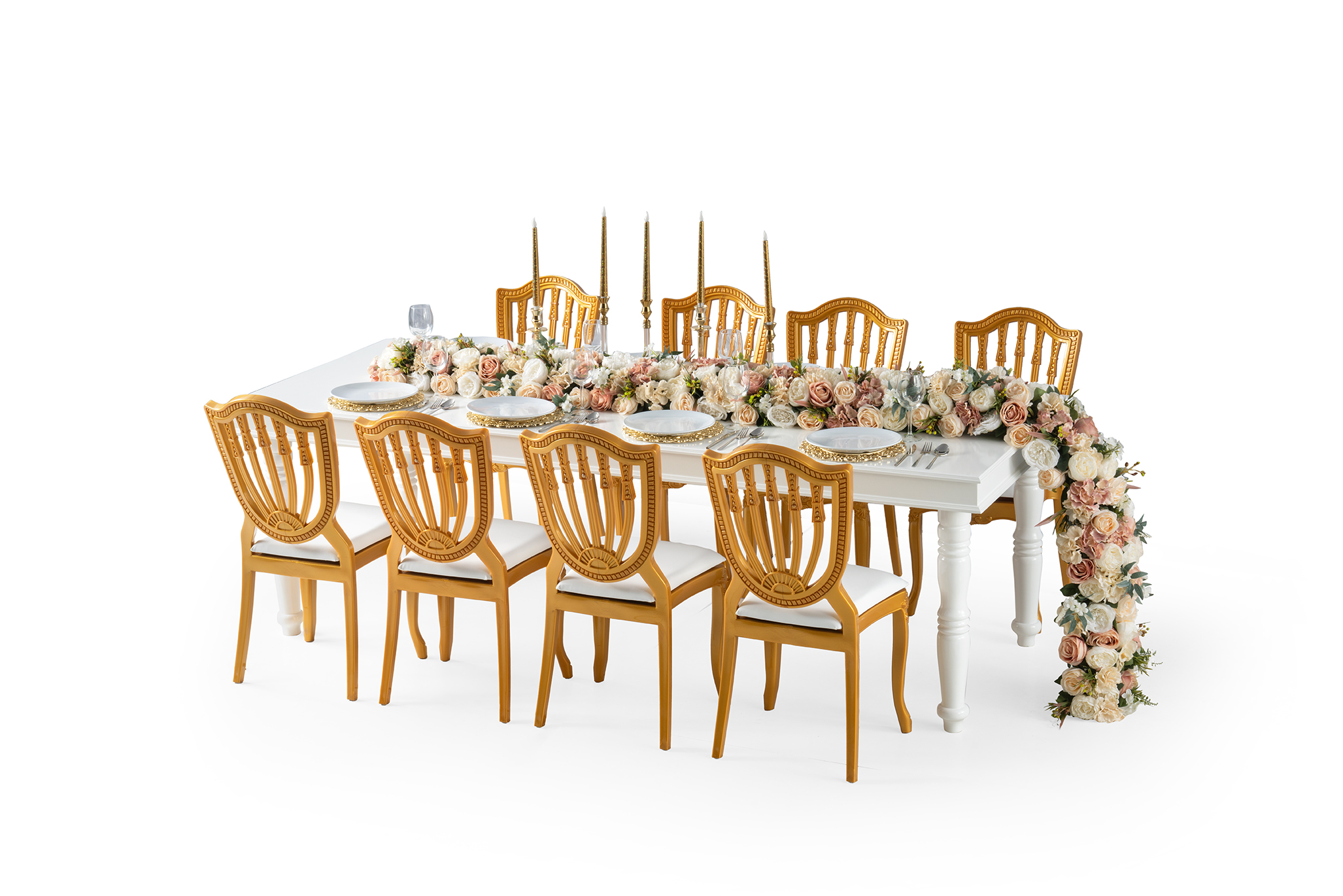 Royal Svadbeni Stol je dizajniran za najsvečanije prilike i pruža kraljevski ambijent vašem vjenčanju ili drugom događaju. Njegov impozantni izgled, raskošni detalji i prostranost omogućavaju udobno sjedenje za 10 do 12 osoba. Stol je izrađen od visokokvalitetnih materijala, što garantuje dugotrajnost i elegantan izgled.