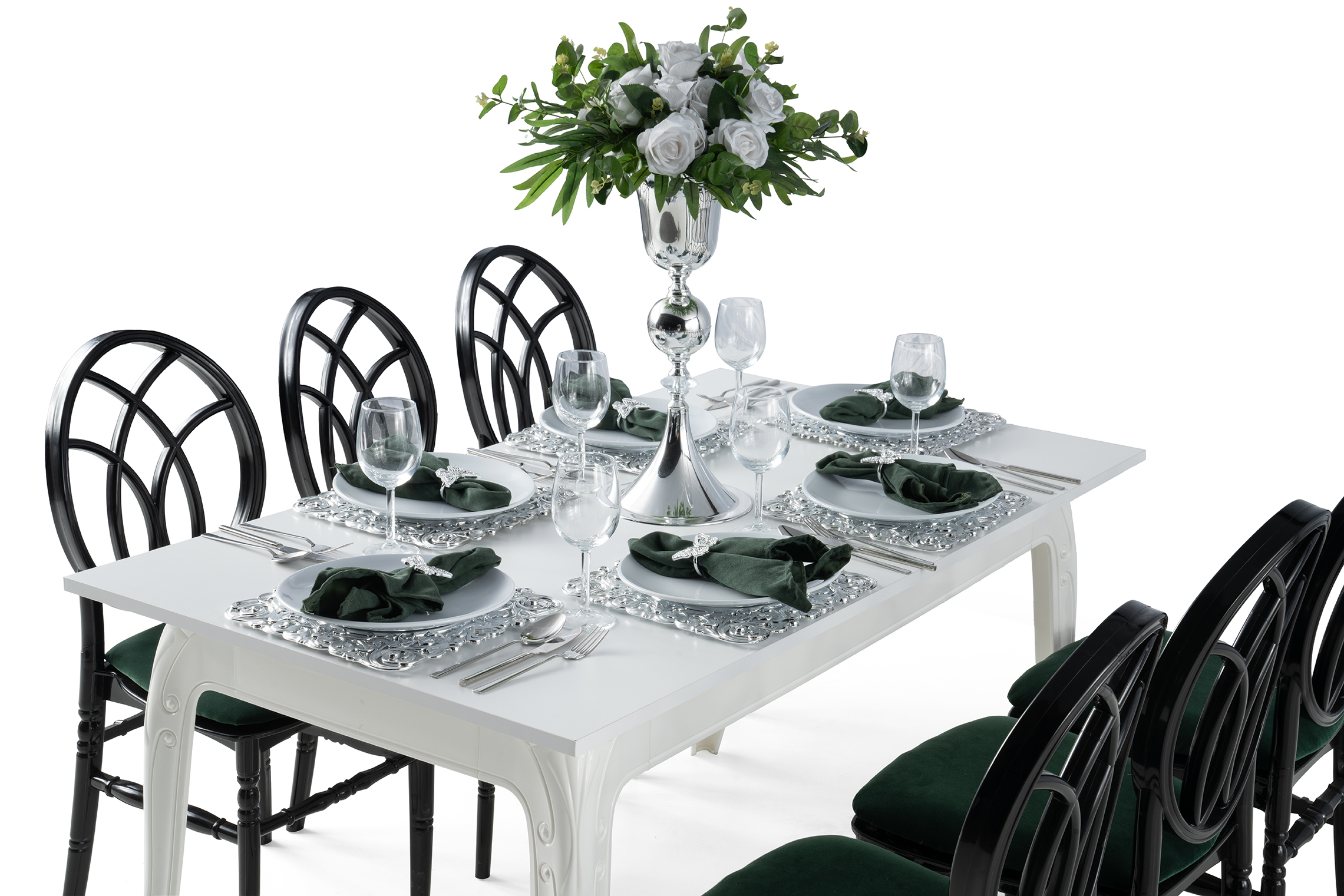 Floria Svadbeni Stol je elegantan i prostran stol, idealan za svadbene svečanosti i druge posebne prilike. Njegov klasični dizajn u kombinaciji sa modernim završnim detaljima daje sofisticiran izgled prostoru. Stol je izrađen od kvalitetnih materijala koji osiguravaju dugotrajnost i stabilnost tokom cijelog događaja. Omogućava udobno sjedenje za 10 do 12 osoba.