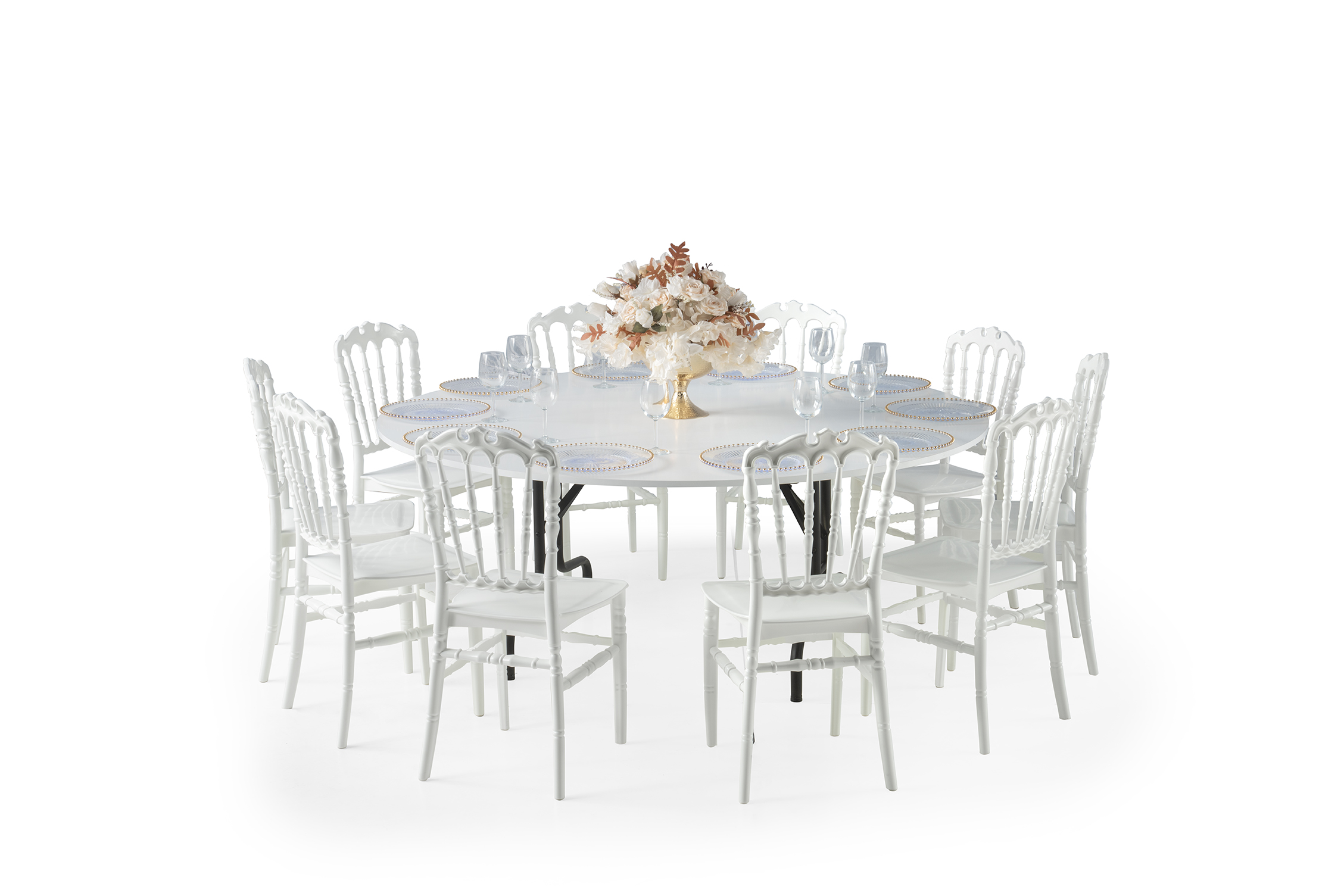 Drop Svadbeni Stol je moderan i minimalistički dizajniran stol, idealan za svadbene proslave i druge svečane prilike. Sa svojim jednostavnim linijama i funkcionalnošću, pruža udobnost i dovoljno prostora za sjedenje do 8 osoba. Stol je izrađen od kvalitetnih materijala, što garantuje dugotrajnost i stabilnost.