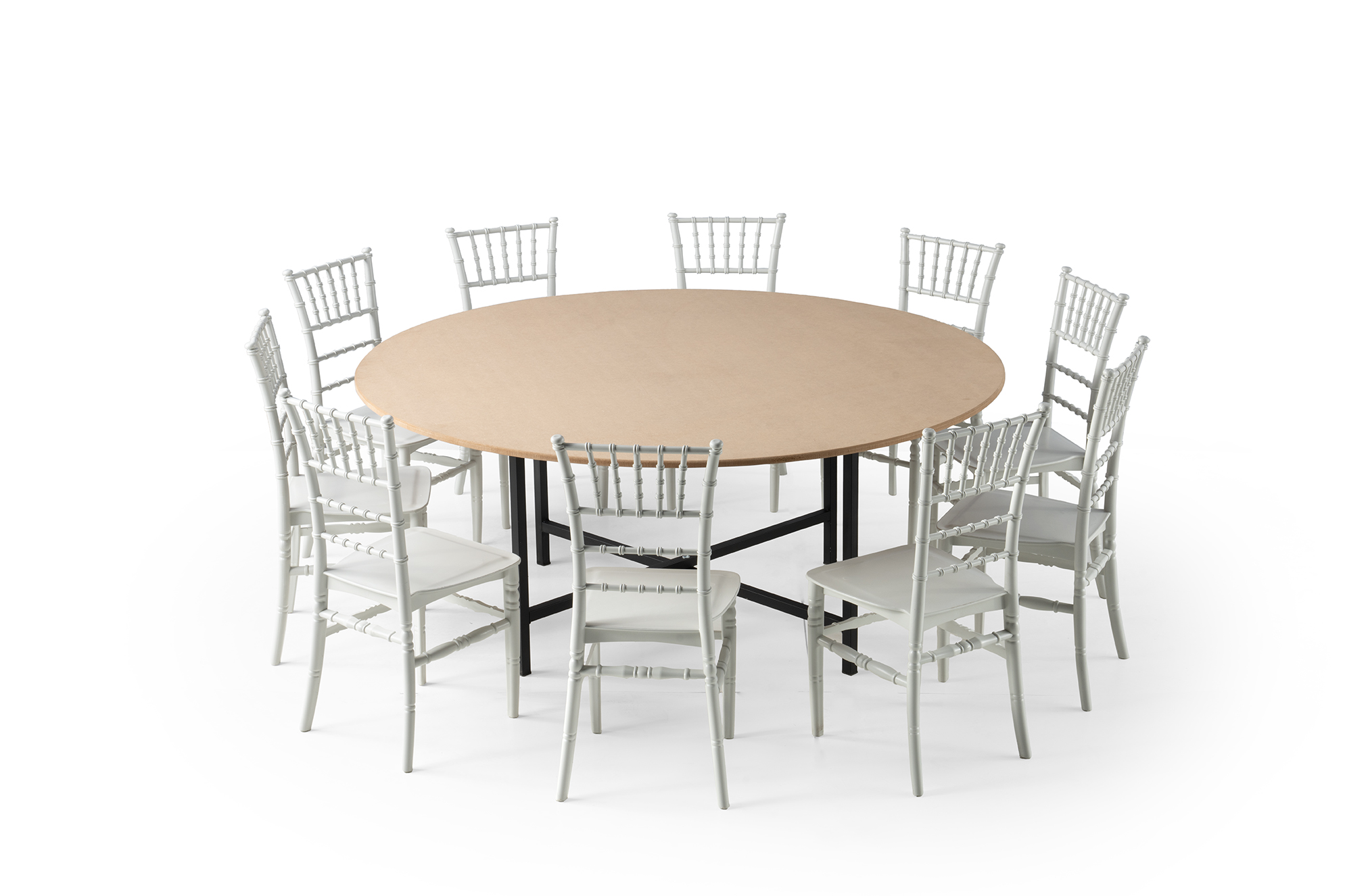 Pula sto za svadbe dizajniran je kako bi omogućio udoban smještaj osam osoba tokom svečanih prilika poput svadbi, banketa i drugih važnih događaja. Izrađen je od izdržljivih i kvalitetnih materijala koji osiguravaju dugotrajnost i otpornost na intenzivnu upotrebu. Njegov elegantan i profinjen dizajn uklapa se u različite dekorativne stilove, od klasičnih do modernih. Stabilna konstrukcija pruža sigurnost i stabilnost, dok je površina stola lako održiva i otporna na fleke.