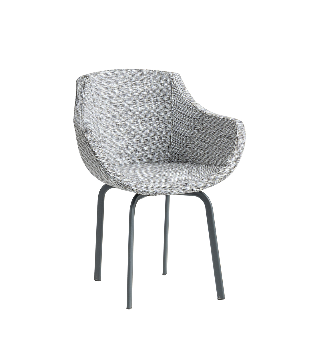 Vista Stolica kombinuje moderan dizajn s funkcionalnošću i izdržljivošću. Njena elegantna tapacirana površina sa vertikalnim šavovima pruža profinjen izgled, dok čelična baza osigurava stabilnost i dug vijek trajanja. Nasloni za ruke integrisani su u strukturu stolice, čime se postiže dodatna udobnost i podrška tokom korištenja.