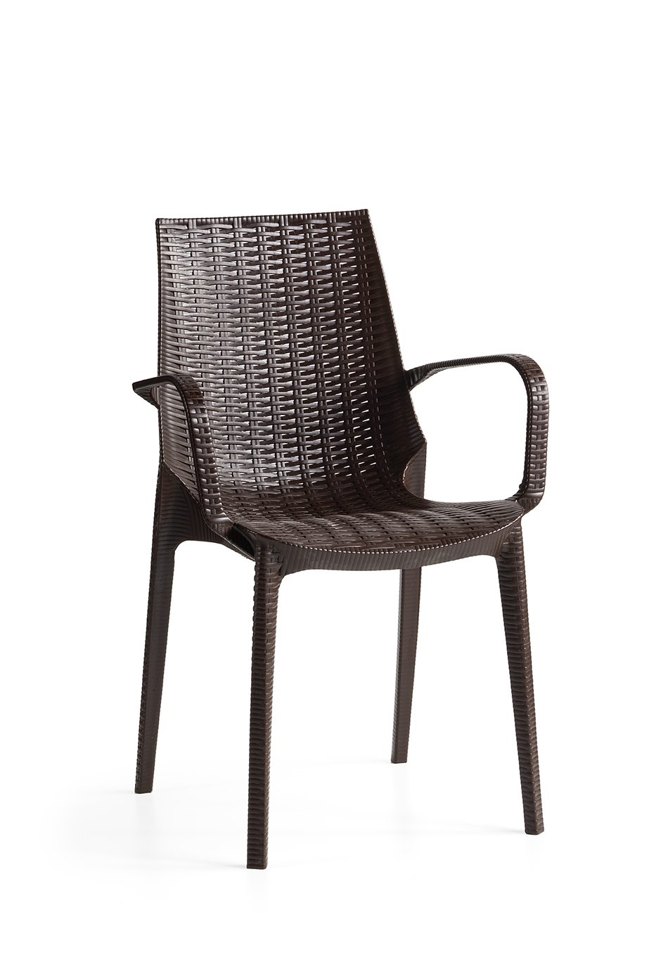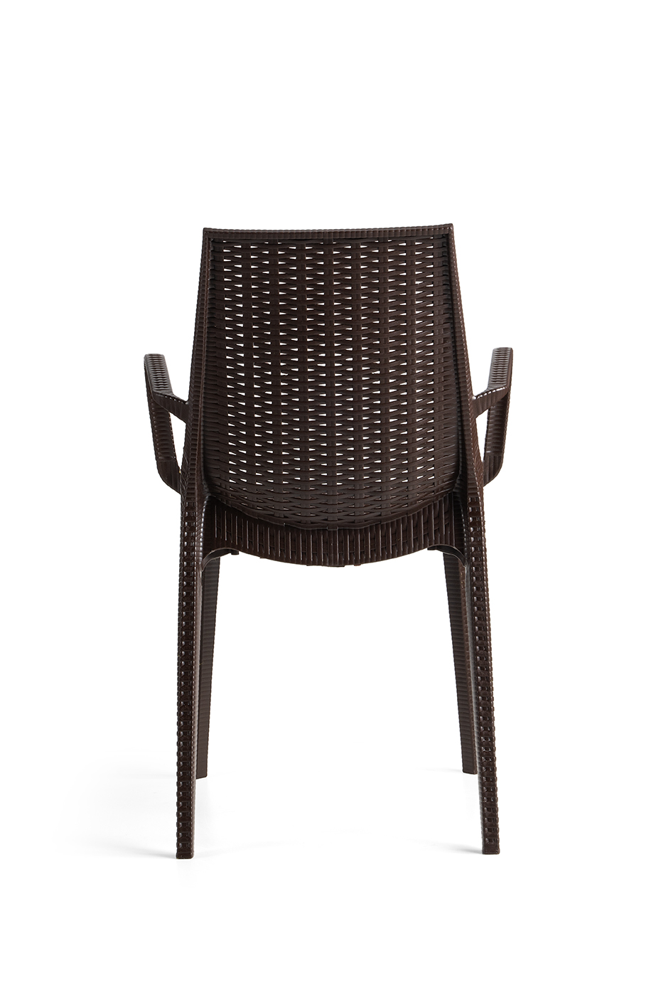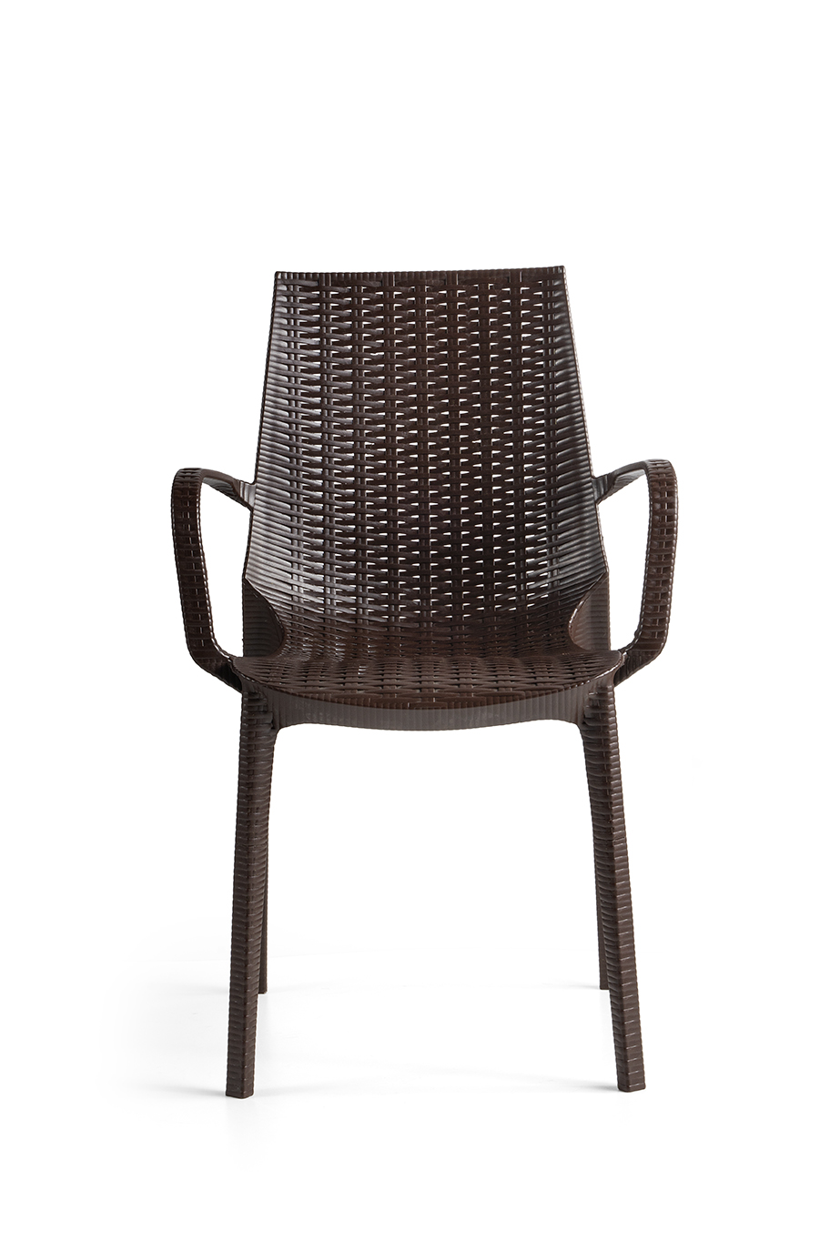 Romans Rattan stolica svojim elegantnim dizajnom donosi prirodan izgled ratana u modernu plastičnu stolicu. Izrađena je od visokokvalitetnog polipropilena sa posebnom teksturom koja imitira ratan, pružajući estetski ugodan i otporan proizvod. Stolica je lagana, ali čvrsta i otporna na udarce, UV zrake, vlagu i sunčevu svetlost, što je čini idealnom za unutrašnju i spoljašnju upotrebu.