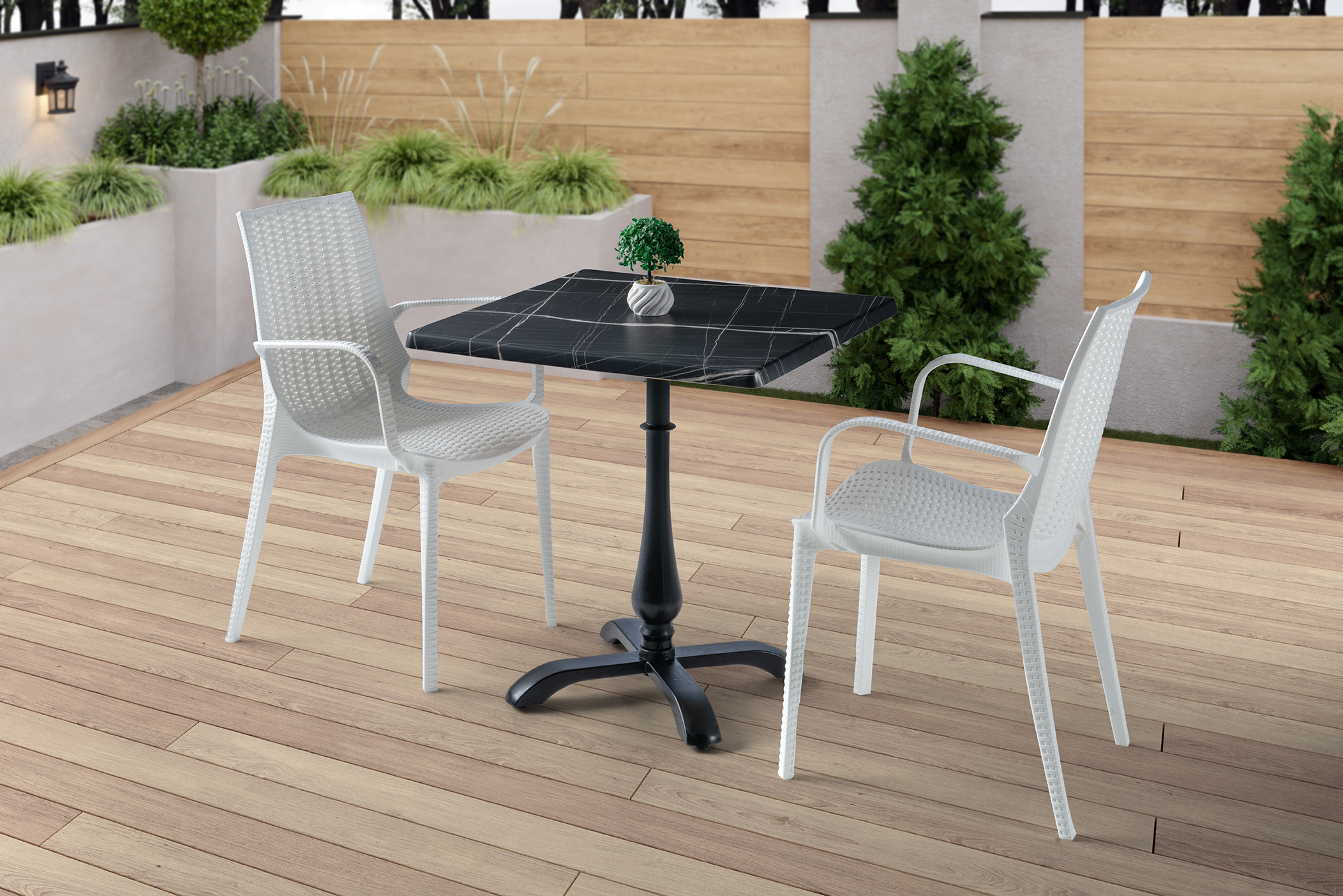 Dubai set predstavlja idealnu kombinaciju modernog dizajna, visoke izdržljivosti i praktičnosti, pogodan i za unutrašnju i za vanjsku upotrebu. Ovaj set uključuje verzalit ploču na Star kompozitnim nogama i Romans Rattan stolicu, što ga čini savršenim izborom za kafiće, restorane, terase i moderne trpezarije.